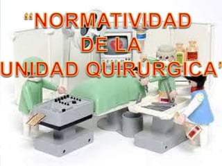 La sala de operaciones es el ambiente estéril donde se realizan intervenciones quirúrgicas. Requiere instalaciones especiales como sistema de ventilación, iluminación, circuitos de gases y electricidad, así como estrictos protocolos de asepsia para mantener un ambiente libre de contaminantes. El personal quirúrgico debe usar ropa e indumentaria especial normalizada que cubra completamente el cuerpo para preservar la esterilidad dentro de la sala.