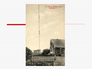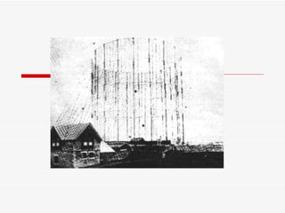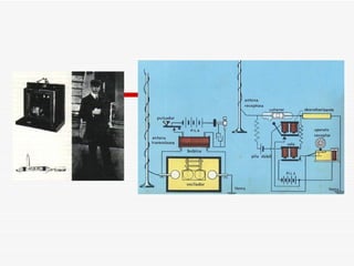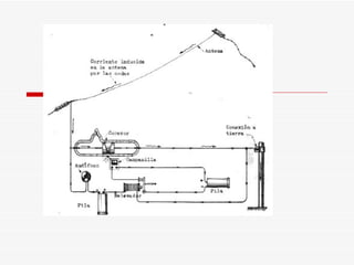 El documento resume brevemente la historia del desarrollo de la radio, desde los experimentos iniciales de Faraday y Maxwell sobre la propagación de ondas electromagnéticas en el siglo XIX, hasta la invención del detector de ondas de radio por Lee De Forest y el establecimiento de las primeras emisoras de radio en Colombia en la década de 1920.