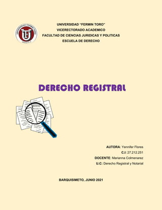 El documento resume los pasos para registrar una empresa en el Registro Mercantil de Venezuela. Primero, se debe tener el acta constitutiva de la empresa con datos específicos. Luego, se reserva el nombre de la empresa en el registro. Finalmente, con el acta y nombre aprobado, se realiza el registro propiamente dicho en el registro mercantil correspondiente.