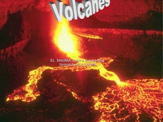 El documento habla sobre el relieve y los ríos de España. Explica que el magma sube a la superficie formando volcanes, y que los ríos ayudan a moldear el relieve español.