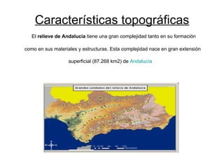 El relieve de Andalucía es muy complejo, con varias unidades principales como Sierra Morena, los Sistemas Béticos y las depresiones Bética e Intrabéticas. Sierra Morena marca el límite norte de Andalucía y es la formación más antigua. Los Sistemas Béticos forman cadenas montañosas que recorren el sur de Andalucía e incluyen las Cordilleras Subbética y Penibética. La Depresión Bética es la región más productiva y está vertebrada por el río Guadalquivir,
