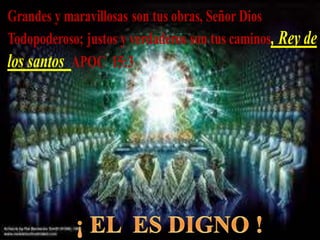 El documento analiza la enseñanza del Salmo 24 como una motivación para enfrentar los retos de la vida, enfatizando la omnipotencia de Dios en la creación y el control del mundo, así como su papel protector para la humanidad. Se menciona la importancia de la justicia divina y el reconocimiento del Rey de gloria, cuyo poder se manifiesta a través de la historia y en la vida de los creyentes. Además, se invita a reflexionar sobre la responsabilidad del ser humano de seguir a Dios y resistir las tentaciones del mal.
