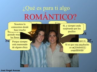 El documento resume las características principales del Romanticismo como movimiento artístico y cultural que surgió en Europa entre finales del siglo XVIII y mediados del siglo XIX. Destaca la subjetividad, el individualismo, la búsqueda de libertad y la expresión de sentimientos. También describe las características del Romanticismo en literatura como la ruptura con normas clásicas y la idealización del genio creador. Finalmente, resume la llegada del Romanticismo a países europeos como Alemania, Inglaterra, Francia y su desar