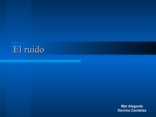 Este documento habla sobre un proyecto de evaluación ecológica sobre el ruido en un instituto. Los objetivos son tomar conciencia de que el ruido es una contaminación, conocer sus orígenes y medidas para reducirlo. Explica que el ruido es un sonido molesto que puede tener efectos fisiológicos y psicológicos negativos. Menciona las fuentes de ruido en la ciudad y el instituto, y sus efectos perjudiciales como pérdida de audición, estrés y problemas de aprendizaje. Finalmente,