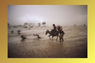 El documento describe un viaje a través del Sahel, la región semiárida que atraviesa el norte de África. Comienza en Senegal y pasa por Mauritania, Malí, Burkina Faso, Níger, Nigeria, Chad y Sudán, describiendo los paisajes áridos, las ciudades y pueblos a lo largo del camino, incluyendo Tomboctou y Agadez, y finalmente llegando a la región conflictiva de Darfur en Sudán, donde la guerra ha causado grandes sufrimientos.