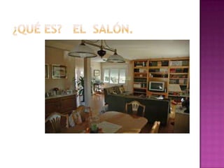 El documento lista varios artículos de mobiliario y objetos comunes que se encontrarían en una casa como una mesa, silla, librería, sofá, sillón, televisor, cuadro, lámpara de techo, equipo de música, portafotos, jarrón, reloj de pared, radio y teléfono.
