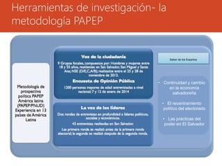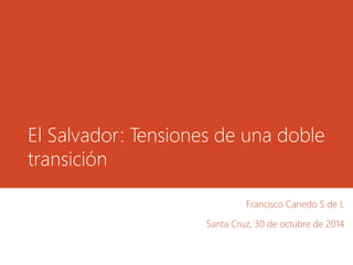 El documento analiza la doble transición política en El Salvador tras las elecciones de 2009, resaltando cambios significativos en el empoderamiento ciudadano y la alternancia en el poder, así como los rezagos de desigualdades económicas y sociales. A pesar de los avances en la democracia, persisten desafíos críticos como la inseguridad, la polarización política y la falta de crecimiento económico. Los líderes ven la posibilidad de generar acuerdos entre actores políticos y sociales, pero también una creciente insatisfacción que podría poner en riesgo los logros institucionales.