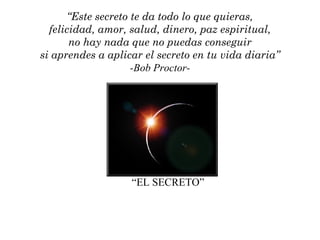 El documento describe "El Secreto", que es la Ley de la Atracción, la cual explica que los pensamientos y emociones atraen experiencias e hitos similares a la vida de una persona. Líderes históricos como Winston Churchill, Martin Luther King Jr., y Einstein conocían y aplicaban este secreto. El documento insta a las personas a escribir y visualizar sus metas diariamente para atraerlas a su vida a través de la Ley de la Atracción.