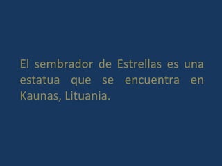 La estatua "El sembrador de Estrellas" en Kaunas, Lituania parece un bronce común durante el día, pero por la noche revela su verdadero significado como un recordatorio para seguir sembrando esperanza aunque no se vean resultados inmediatos.