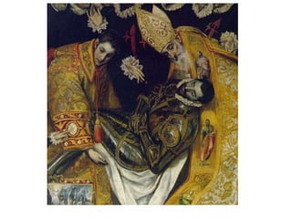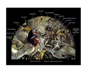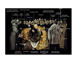La pintura representa una escena religiosa de la historia cristiana creada por el artista El Greco entre 1586 y 1588 usando técnicas de pintura al óleo sobre lienzo. Mide aproximadamente 4,8 metros por 3,6 metros y se encuentra en la Iglesia de Santo Tomé en Toledo, España.