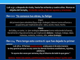 El documento habla sobre el servicio a Dios. Menciona que debemos servir a Dios con perseverancia y sin desmayar a pesar de las dificultades. También debemos ofrecerle nuestras posesiones y bienes para el servicio. Finalmente, explica que para ser discípulo de Jesús debemos renunciar a todas nuestras posesiones y anteponer el servicio a Él sobre cualquier otra cosa.