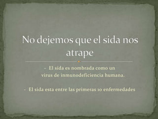 El documento habla sobre el sida. Un hombre fue diagnosticado erróneamente con VIH y esta experiencia lo hizo reflexionar sobre la enfermedad y las personas que la padecen. Escribió un poema sobre el dolor y la muerte por sida que conmovió a otros. Aprendió a tener más empatía y compasión.