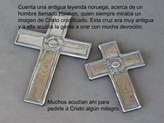 La leyenda cuenta que un hombre llamado Haakon le pidió a Jesús ocupar su lugar en la cruz. Jesús aceptó con la condición de que Haakon guardara silencio siempre, sin importar lo que viera. Más tarde, Haakon rompió su promesa de silencio para defender a un joven de una falsa acusación, por lo que Jesús le dijo que no servía para ocupar su puesto y volvió a la cruz.