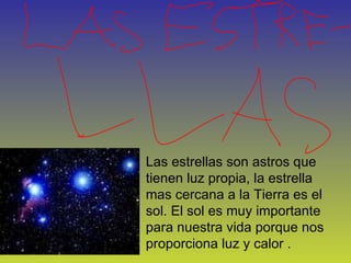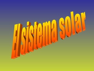 El documento describe los componentes principales del sistema solar, incluyendo el sol, los planetas, satélites como la luna de la Tierra, y otros cuerpos celestes como cometas y asteroides. Explica que el sistema solar está formado por el sol y ocho planetas, y proporciona detalles sobre los cuatro planetas interiores y exteriores. También describe los movimientos de traslación y rotación de la Tierra y las fases de la luna a lo largo de sus 28 días de órbita.