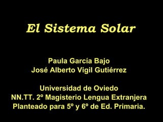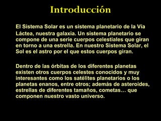 Este documento presenta una tarea para grupos de estudiantes sobre temas relacionados con el Sistema Solar. Los estudiantes deben escoger entre temas como el Sol, la Luna, planetas específicos, satélites planetarios o cometas. Deben crear una presentación de 3-4 páginas sobre el tema seleccionado para exponer al frente de la clase. Se ofrecen enlaces y recursos para apoyar la investigación y se evalúan aspectos como el contenido, ortografía, uso de recursos y organización grupal.
