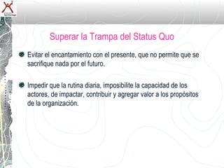 Este documento describe los conceptos de Súper-Liderazgo y liderazgo diferenciado. El Súper-Liderazgo se refiere a la capacidad de los líderes de superar la rutina diaria y el status quo para impulsar el progreso de la organización. También involucra desarrollar las capacidades del capital humano y pensar más allá de las limitaciones actuales. El liderazgo diferenciado requiere que los líderes comprendan las perspectivas de otros sin juzgarlos y promuevan diálogos sinceros.