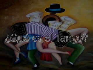 El documento habla sobre el tango, un género musical y baile originado en Argentina. Explica que el tango varía entre regiones y se caracteriza por la improvisación. También describe los instrumentos típicos como el bandoneón, y figuras importantes como Carlos Gardel. Menciona que el tango surgió en 1880 en lugares populares de Buenos Aires como el Riachuelo. Finalmente, brinda contexto sobre el barrio de La Boca y cómo inspiró la canción de Gardel "Caminito".
