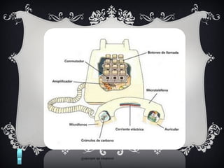 El documento resume la historia del teléfono, desde los primeros intentos de comunicación a distancia hasta la invención del teléfono moderno. En 1861, Johan Philipp Reis inventó el primer teléfono capaz de convertir sonidos en señales eléctricas, pero su invento no fue reconocido. En 1876, Alexander Graham Bell presentó con éxito el teléfono electromagnético. Más tarde, Thomas Edison y otros mejoraron la tecnología para permitir comunicaciones a larga distancia. El documento también explica brevemente cómo funciona un teléfono y
