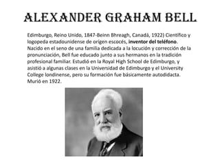 Alexander Graham Bell, un científico y logopeda escocés-estadounidense, inventó el teléfono en 1876. El primer teléfono de Bell consistía en un emisor, receptor y un solo cable de conexión. Cuando las ondas de sonido golpeaban el diafragma del emisor, este vibraba y generaba una corriente eléctrica que se transmitía por el cable hacia el receptor, donde las variaciones en el campo magnético hacían vibrar el diafragma para reproducir el sonido original.