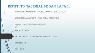 El documento describe la estructura y propiedades de los átomos, que son las unidades básicas de la química, compuestos por electrones, protones y neutrones. Además, se menciona el concepto de número atómico, isótopos y cómo los átomos se agrupan para formar moléculas. También se aborda la formación de átomos y elementos en el universo, desde el Big Bang hasta la nucleosíntesis en las estrellas.