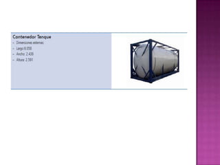 3. Existen diferentes tipos de buques como los de carga general, tanques, graneleros, portacontenedores y otros, que se utilizan para transportar diferentes tipos de carga.