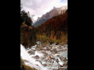 El documento habla sobre el Parque Nacional de Ordesa y Monte Perdido, un área natural protegida en los Pirineos donde la naturaleza alcanza la perfección. También menciona la Pasión según san Mateo de Bach, en particular el coral "Wenn ich einMal soll scheiden". Finalmente, anima al lector a compartir el documento con sus amigos pulsando el logo.