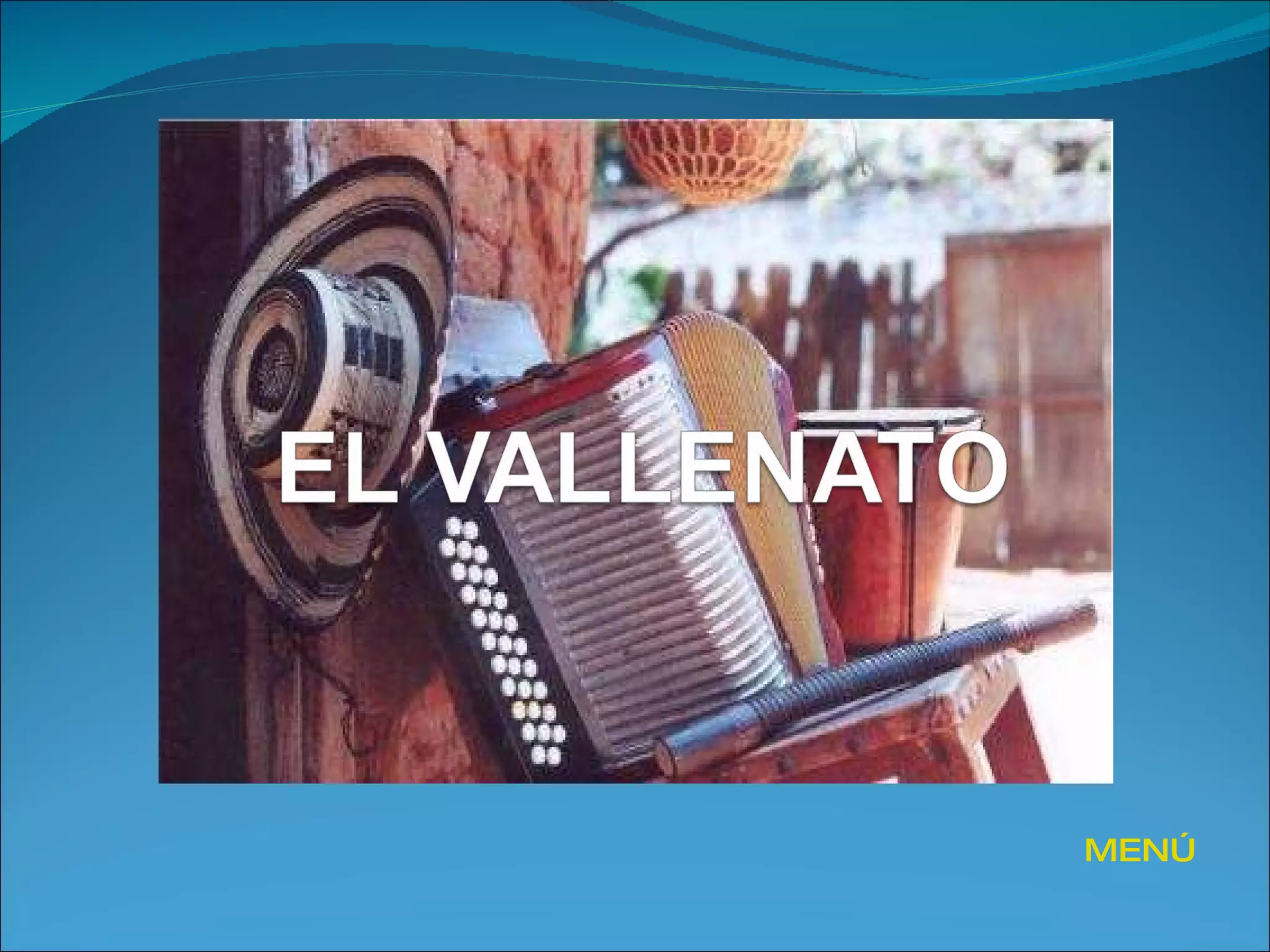 El documento proporciona una breve historia del vallenato, un género musical folclórico de Colombia. Explica que surgió en las sabanas del norte de Colombia y fue difundido por mensajeros a caballo como Francisco Moscote. Describe los instrumentos tradicionales como la caja y la guacharaca, así como diferentes aires y ritmos vallenatos. También resume las tres escuelas del vallenato y diferentes corrientes modernas del género.