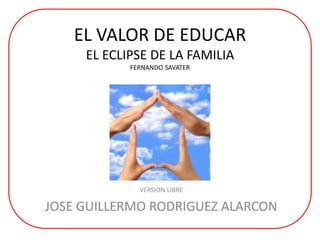 El documento discute el valor de la educación familiar y el eclipse de la familia en la sociedad actual. Explica que la familia es fundamental para la socialización primaria de los niños, donde aprenden habilidades básicas y a distinguir el bien del mal. Sin embargo, las razones sociológicas como las mujeres en el trabajo y el divorcio, así como las razones morales como el fanatismo por la juventud, han llevado a que la familia descuide sus funciones educativas. Esto ha generado problemas para las escuelas y una falta de autoridad en las