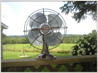 El documento resume los diferentes tipos de ventiladores, sus usos, cómo funcionan y sus componentes. Explica que un ventilador produce una corriente de aire mediante una superficie ancha que gira, y que fueron inventados en 1882 para refrescar ambientes. Describe los componentes clave de un ventilador como las aspas, el motor eléctrico, y la bobina, y sus usos para ventilar, circular aire y reducir el estrés.