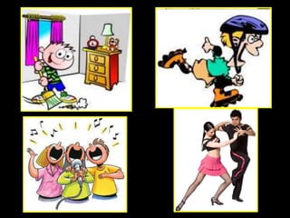 Este documento explica que un verbo es una palabra que indica acción u ocurrencia. Proporciona ejemplos de verbos que expresan acciones físicas como saltar o ladrar, así como estados mentales o eventos naturales como enfurecerse o llover. Además, explica las tres conjugaciones principales de los verbos en español terminados en -ar, -er, e -ir.