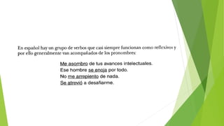 Este documento resume los principales aspectos de la gramática del verbo español, incluyendo la conjugación de verbos regulares e irregulares, los tiempos verbales como el presente indicativo y subjuntivo, la voz pasiva, y las diferentes clasificaciones de verbos como transitivos, intransitivos, copulativos y auxiliares. También cubre temas como el imperativo, gerundio, participio y formas no personales del verbo.