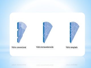 El documento proporciona información sobre la historia y proceso de fabricación del vidrio. Explica que el vidrio se fabrica a partir de una mezcla de arena de sílice, carbonato de sodio y caliza que se funde a alrededor de 1500°C. También describe las etapas del proceso de fabricación, incluyendo la mezcla de materias primas, fusión, moldeo y enfriamiento controlado. Además, resalta que el vidrio se ha utilizado desde hace miles de años y ha evolucionado gracias a innovaciones como el soplado y