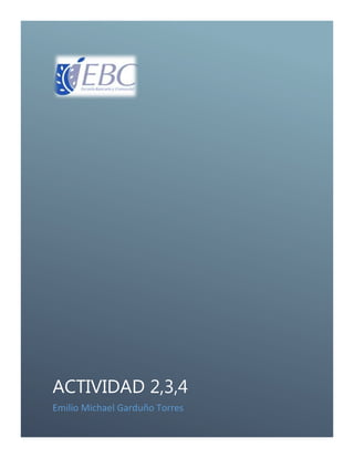 El documento describe el proceso de benchmarking realizado por la Escuela Bancaria y Comercial (EBC) para evaluar su posición frente a otras instituciones educativas. La EBC se especializa en carreras de negocios y tiene una ventaja competitiva en este campo. El benchmarking involucró evaluar variables como innovación en planes de estudio, precio, calidad de estudios, experiencia e imagen del mercado. Los resultados mostraron que la EBC sobresale en estas métricas frente a otras universidades. El objetivo principal de la EBC es atraer a los padres de familia deb
