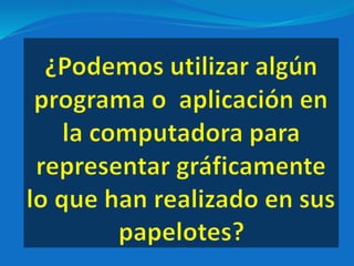 Este documento habla sobre diferentes tipos de gráficos estadísticos, incluyendo gráficos de barras para variables cualitativas o cuantitativas discretas, histogramas para variables cuantitativas continuas, gráficos poligonales de frecuencia obtenidos al unir puntos medios de histogramas, y gráficos circulares para destacar frecuencias porcentuales de variables cualitativas o cuantitativas.