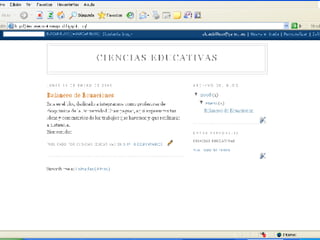 El documento habla sobre los blogs y su utilidad para publicar ideas de manera fácil y rápida. Explica que los blogs permiten incluir contenido multimedia como texto, imágenes, audio y video. Además, menciona algunas plataformas y herramientas para crear y gestionar blogs de manera sencilla, así como complementos para enriquecer los blogs con contenido almacenado en otros sitios. Finalmente, proporciona enlaces a recursos adicionales sobre el uso educativo de los blogs.