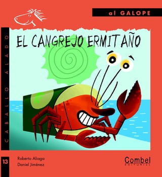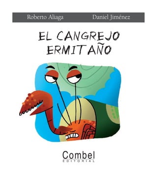 El documento narra la historia de un cangrejo ermitaño muy gruñón que vive solo en una lata de guisantes. Cuando sus vecinos, como una gaviota y una palmera, le piden ayuda para encontrar una pluma perdida o recoger dátiles caídos, él siempre se niega diciendo que está ocupado y no quiere que lo molesten.