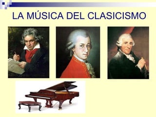 El documento resume los aspectos musicales, históricos y culturales del periodo clásico. La música se orientó hacia el equilibrio, la claridad y la sencillez, inspirándose en los ideales de la cultura clásica. Compositores como Haydn, Mozart y Beethoven dominaron el periodo trabajando en Viena. La ópera seria y bufa, así como la música de cámara y orquestal fueron géneros importantes durante este tiempo.