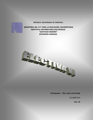 Este documento es un registro de identificación para José Luis Peralta, un técnico superior universitario con cédula 8.511.711 que estudia en la Extensión Barinas del Instituto Universitario Politécnico "Santiago Mariño" en la República Bolivariana de Venezuela.