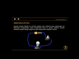 Este documento presenta los símbolos básicos de la electricidad - voltaje (V), intensidad de corriente (I) y resistencia (R).