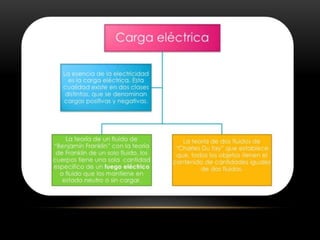Mariana Cardona Betancur e Isabella Aguirre Murillo presentan un documento sobre Charles de Coulomb, un físico francés reconocido por establecer la ley de atracción entre cargas eléctricas y la unidad de carga eléctrica, el coulomb. El documento también aborda conceptos fundamentales de electricidad, campo eléctrico, y tipos de carga, así como los métodos de electrización y la ley de Coulomb, que describe la interacción entre cargas. Además, se incluyen ejemplos de ejercicios relacionados con la ley de Coulomb y su aplicación.