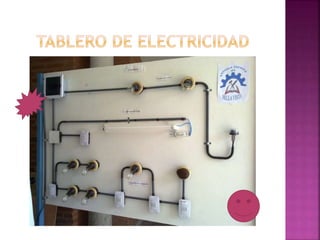 El documento habla sobre tableros de electricidad y circuitos inteligentes. Explica que los tableros de electricidad son paneles que distribuyen y controlan la electricidad en un edificio, y que los circuitos inteligentes permiten el control remoto y monitoreo de los dispositivos eléctricos conectados.