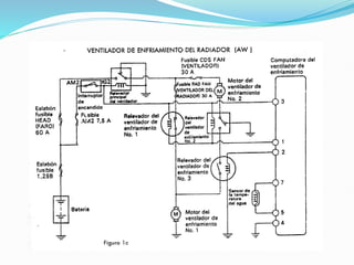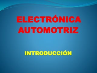 El documento describe los sistemas electrónicos en vehículos modernos y sus componentes. Incluye una introducción a los sistemas de control electrónico del motor y sus sensores clave, como el sensor de temperatura del refrigerante y el sensor MAP. También cubre conceptos básicos de electrónica automotriz como semiconductores, diodos, transistores y termistores.