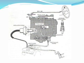 Este documento describe los sistemas de control de transmisiones automáticas, comparando los sistemas hidráulicos tradicionales con los sistemas electrónicos modernos. Explica que los sistemas electrónicos usan un módulo de control de transmisión, sensores y actuadores para calcular de manera más precisa el momento de cambio de marchas, compensar el desgaste y realizar diagnósticos automáticos.