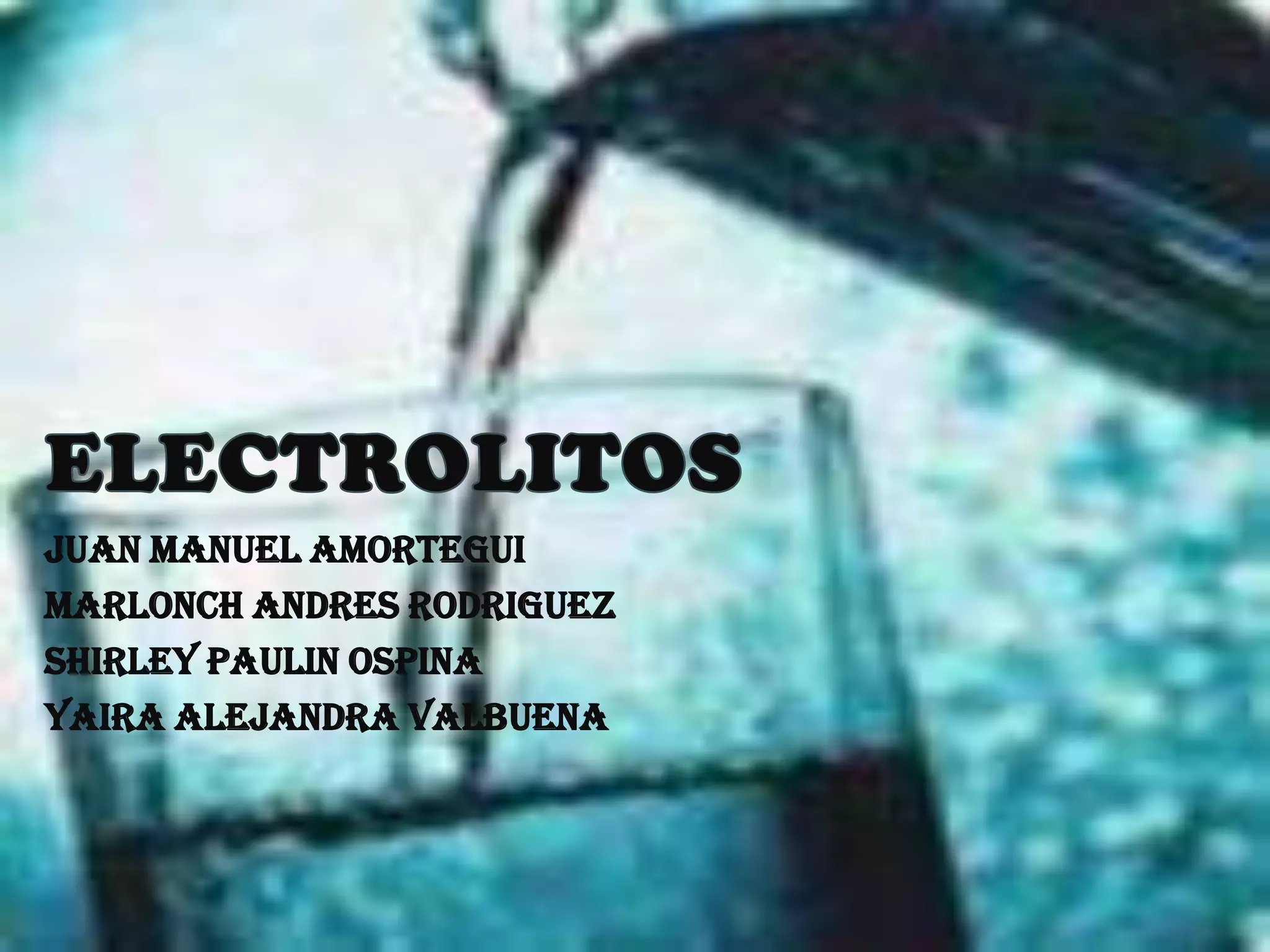 Este documento describe los electrolitos, sustancias que se disuelven en el agua de las células y transportan cargas eléctricas para mantener el equilibrio de los fluidos. Los principales electrolitos son el sodio, potasio y cloro. El documento también explica cómo medir los niveles de electrolitos en la sangre, orina y sudor, y los valores normales de electrolitos como el sodio, calcio, potasio y cloro. Finalmente, cubre los efectos de un desequilibrio electrolítico y su tratamiento.