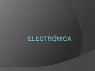 ELECTRONICALa electrónica es la rama de la física, y fundamentalmente una especialización de la ingeniería, que estudia y emplea sistemas cuyo funcionamiento se basa en la conducción y el control del flujo microscópico de los electrones u otras partículas cargadas eléctricamente.Utiliza una gran variedad de dispositivos, desde las válvulas termoiónicas hasta los semiconductores. El diseño y la construcción de circuitos electrónicos para resolver problemas prácticos forma parte de los campos de la Ingeniería electrónica, electromecánica y la informática en el diseño de softwarepara su control. El estudio de nuevos dispositivos semiconductores y su tecnología se suele considerar una rama de la Física y química relativamente.Ir a la siguienteIr a la anteriorMenú principal