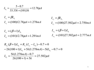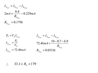 El documento presenta varios circuitos electrónicos con transistores y diodos zener. Incluye problemas para hallar puntos de operación de transistores, demostrar que un diodo zener está funcionando correctamente y calcular potencia consumida. También contiene ejemplos de reguladores de voltaje con configuraciones serie, paralelo y Darlington.