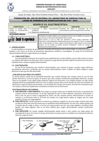 El documento presenta información sobre electrostática. Explica conceptos como carga eléctrica, electrización, formas de electrizar cuerpos (fricción, contacto, inducción), leyes electrostáticas, tipos de cuerpos (aisladores y conductores), intensidad de campo eléctrico e incluye descripciones de experiencias y materiales para ilustrar estos conceptos. El documento provee los fundamentos teóricos y prácticos para comprender los fenómenos eléctricos generados por cargas eléctricas en reposo.