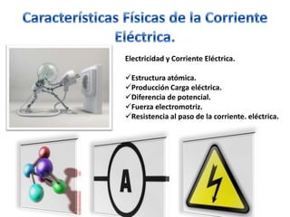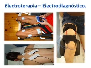 Este documento presenta información sobre diferentes tipos de corrientes eléctricas utilizadas en electroterapia. Explica conceptos básicos de electricidad y describe las características, efectos e indicaciones de corrientes de baja, media y alta frecuencia, incluyendo corrientes TENS, interferenciales y microcorrientes. También cubre aspectos relacionados a la aplicación segura de estas corrientes eléctricas en el tratamiento de diversas condiciones.