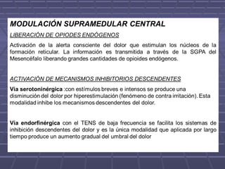 Este documento describe conceptos básicos de electroterapia, incluyendo la clasificación y características de las corrientes eléctricas, así como sus efectos. Se explica que la electroterapia consiste en aplicar energía electromagnética al cuerpo para producir reacciones biológicas y fisiológicas que mejoren los tejidos. Las corrientes se clasifican según su polaridad, fase, estado y forma, entre otros. Algunos efectos generales son la ionización, analgesia y vasodilatación.