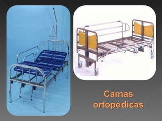 El documento describe diferentes tipos de dispositivos de asistencia a la marcha como andadores, muletas, bastones comunes, bastones canadienses y bastones multipodales. Explica sus partes, cómo se usan correctamente y las ventajas e inconvenientes de cada uno.